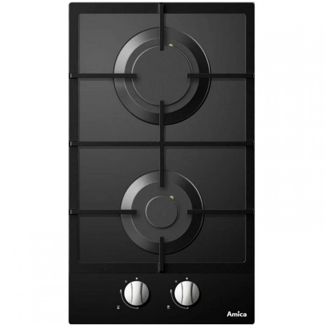 table domino gaz 30cm 4000w noir – ag2620n – Table de cuisson domino gaz Amica AG2620N dotĂ©e de 2 brĂ»leurs dont 1 rapide 3 kW. – Type de produit : Table de cuisson domino gaz.