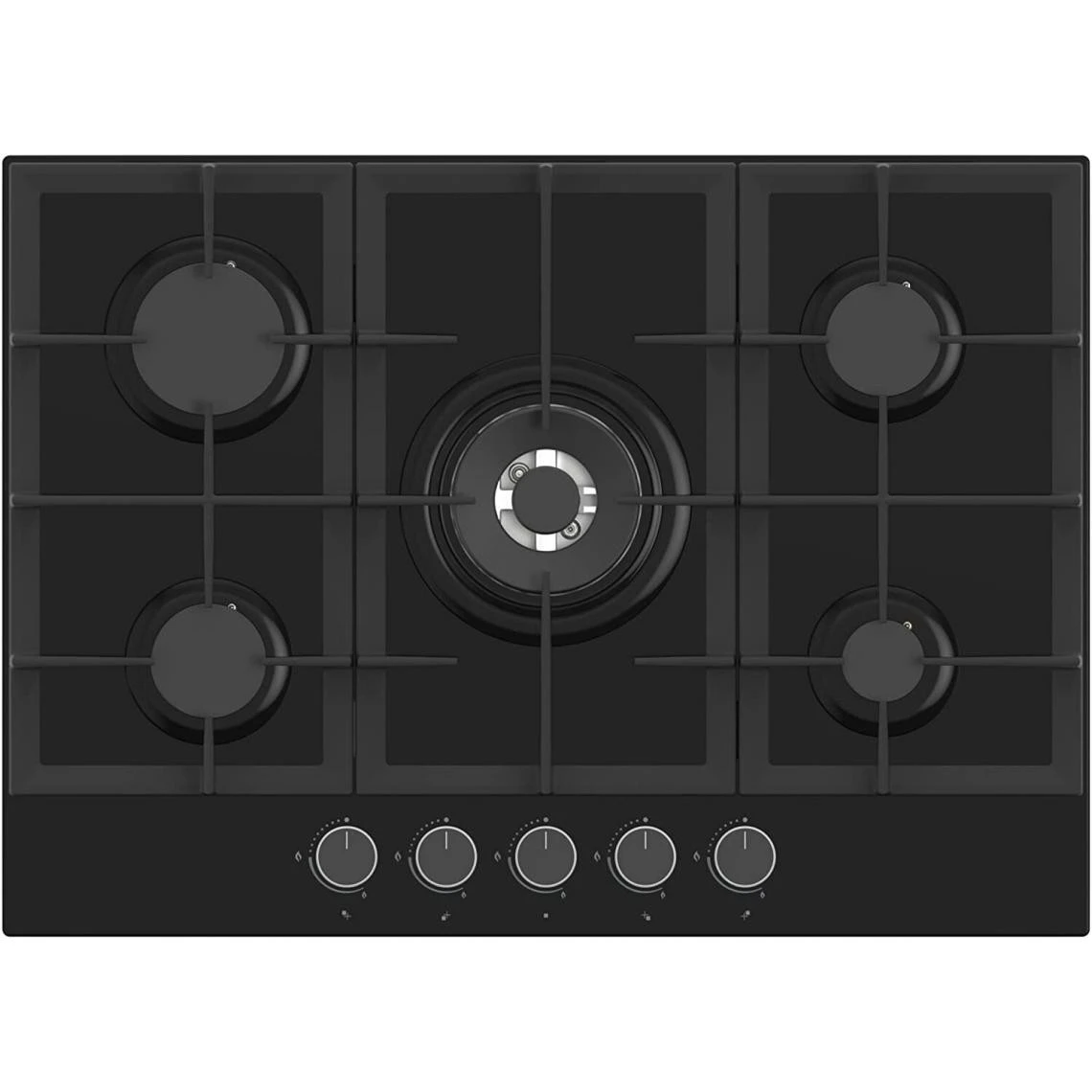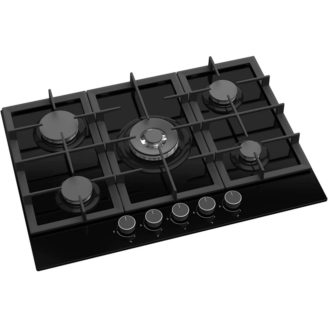 Points forts Amsta AMTG5FWB – Table de cuisson gaz – 5 foyers – 70 cm – 11700 watts – Support en fonte – Noir
