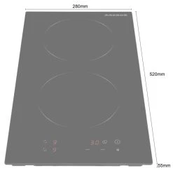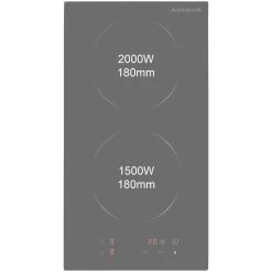 Double – plaques à induction avec 2 zones de cuissonModerne à deux zones avec des plaques à induction 3500 W de puissance, 9 niveaux de température réglables et minuterie intégrée.2 zones de cuissonTable de cuisson induction encombrant, idéal pour les petites cuisines.Protection contre la surchauffePour éviter d’endommager la surface de cuisson est contrôlée par un capteur de température. La table de cuisson s’éteint automatiquement à une température trop élevée.VerrouillageL’unité dispose d’un verrouillage du clavier, de sorte qu’il n’est pas possible de mettre l’appareil sur les enfants.Auto Power OffSi vous oubliez d’éteindre la table de cuisson, a lieu après un certain temps, l’arrêt automatique.Données techniques:- Nombre de brûleurs: 2- Zone de cuisson 1: 1500 W- Zone de cuisson 2: 2000 W- Masse: 520 mm x 280 mm x 55 mm- Tension du réseau: 220-240 V 50 Hz- Arrêt automatique: Oui- Dimensions de montage: 490 mm x 250 mm- Poids (kg): 6,7 kg- Verre: Vitro Ceramic- Sécurité enfants/serrure à clé: Oui- Type de plaque: Table de cuisson induction- Alerte de chaleur restante: Oui- Surface: Vitro céramique de verre- Timer: 99 Min- Niveaux de chaleur: 9- Diamètre (cm): 18- Poids (kg): 6,4- Marque: Arebos- Livraison comprenant: 1 x double plaque de cuisson, 1 x manuel