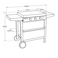 – Plancha avec chariot : L 124 × l 57 × H 87cm