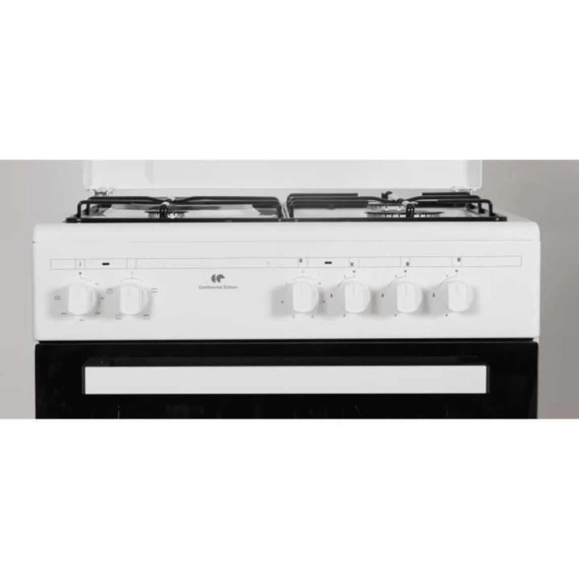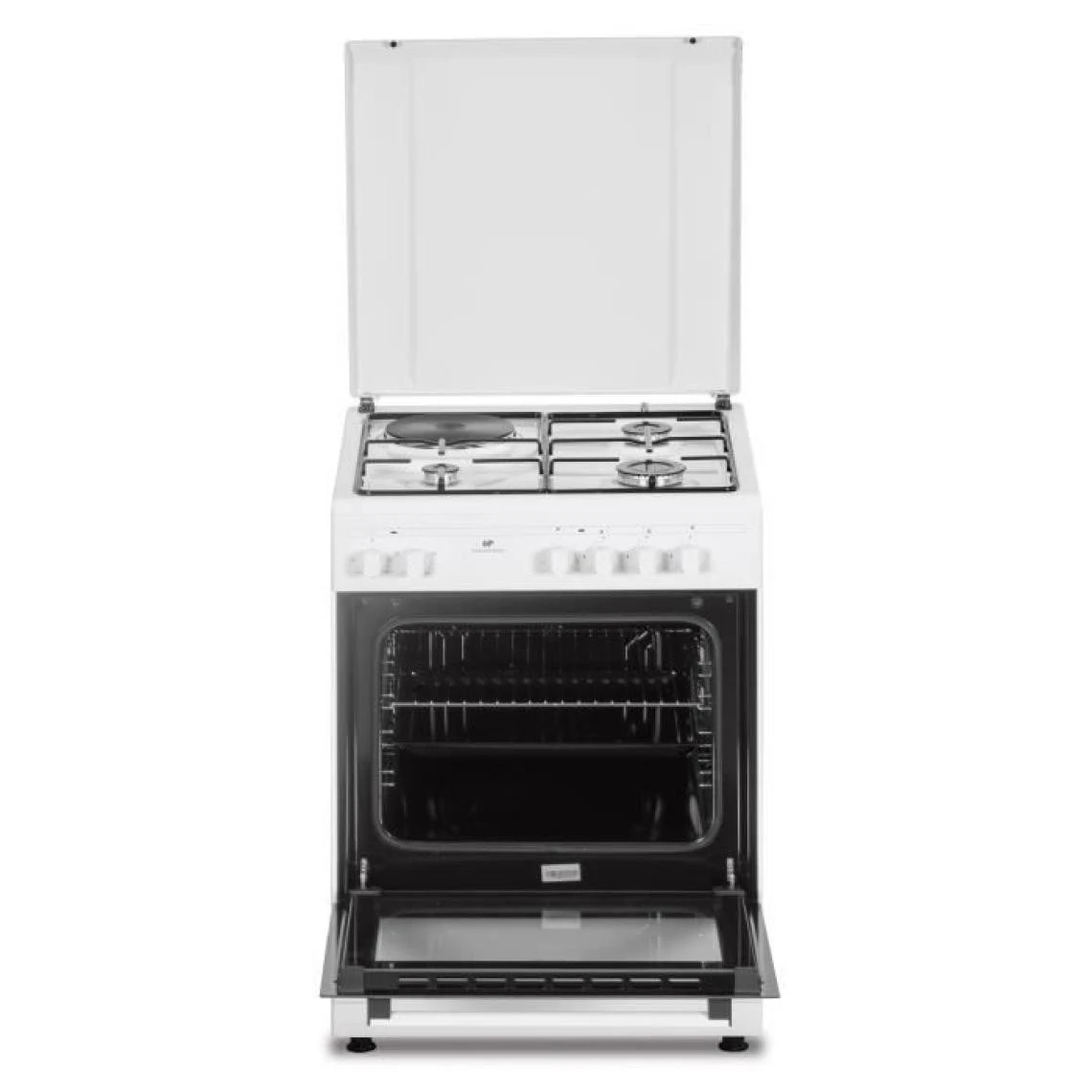 Cuisiniere mixte CONTINENTAL EDISON CECM60FCW – 3 feux gaz + 1 électrique – L59,8 x P61 xH83 cm – Blanc.