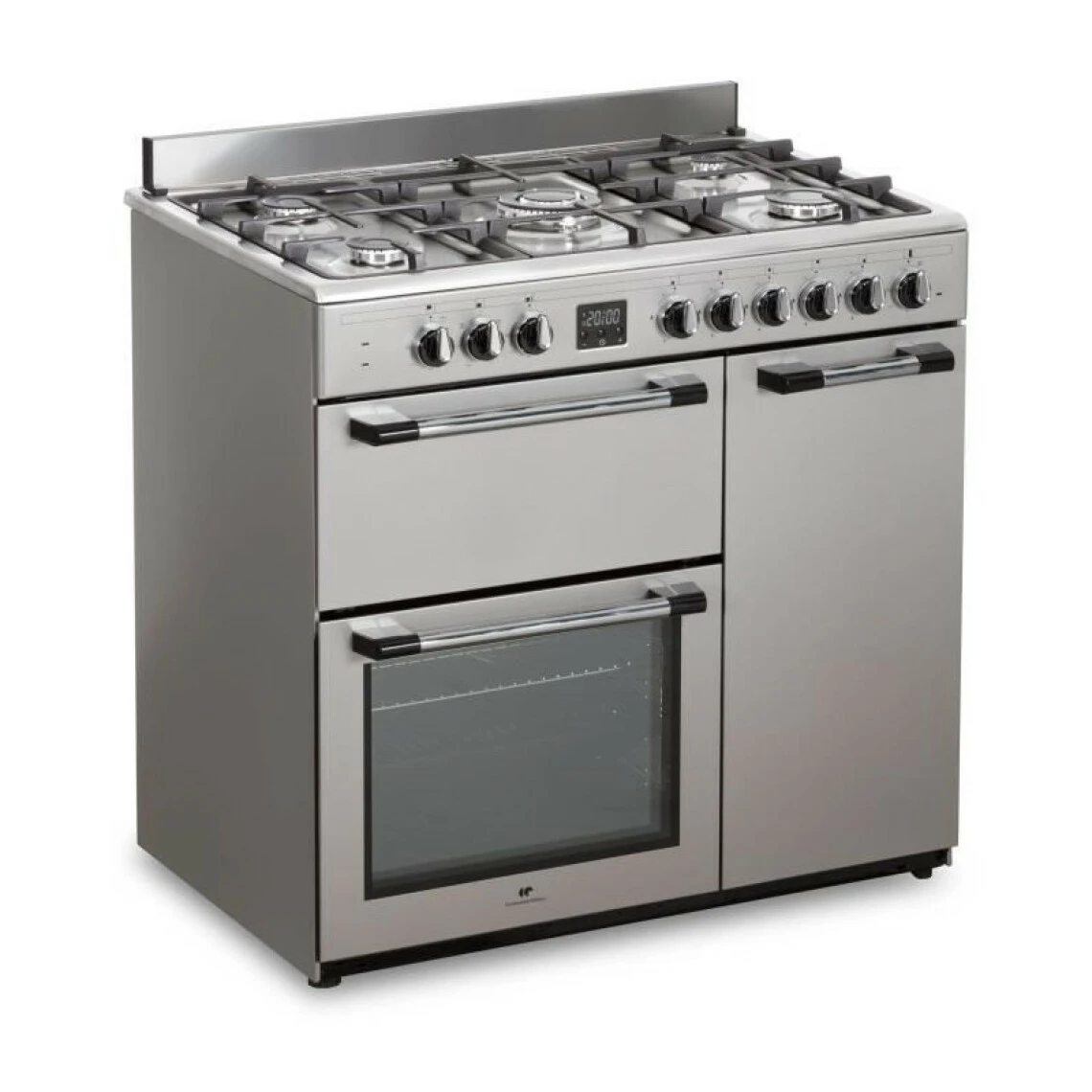 CONTINENTAL EDISON Cuisiniere piano gaz 3 fours électriques inox largeur 90 cm