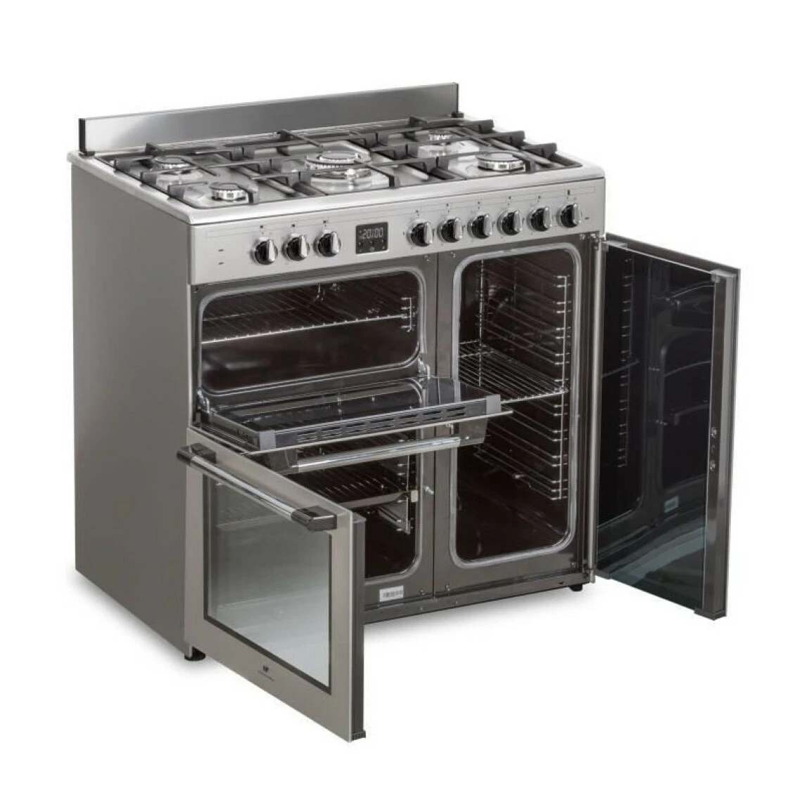 Points forts Continental Edison Cuisiniere piano gaz 3 fours electriques CONTINENTAL EDISON CECP903FIX 5 feux – Inox – Largeur 90 cm