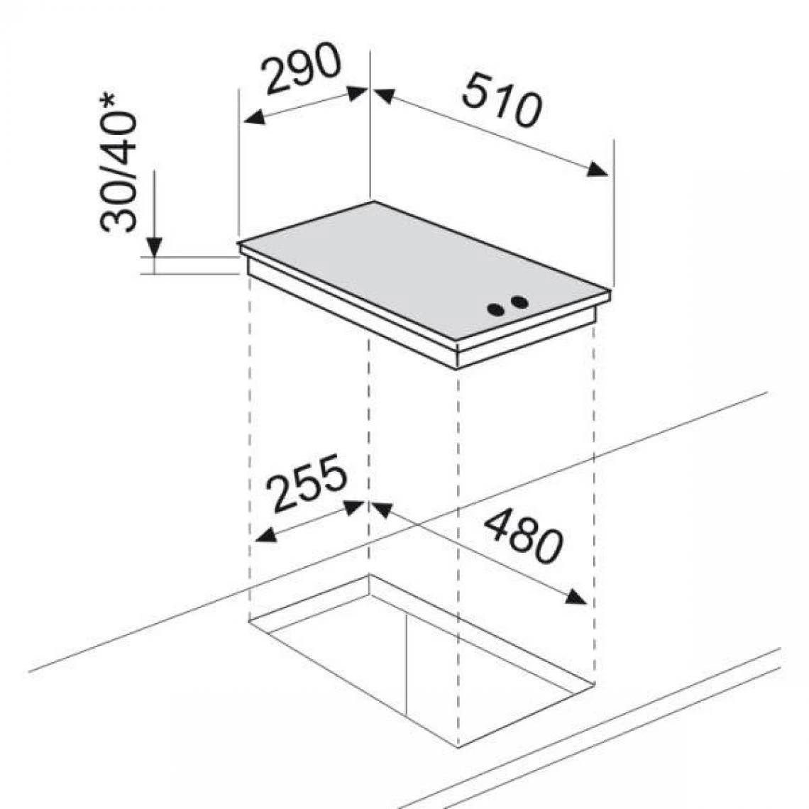 Dimensions de l’encastrement (LxPxE) : 26.5 x 48 x 3 cm