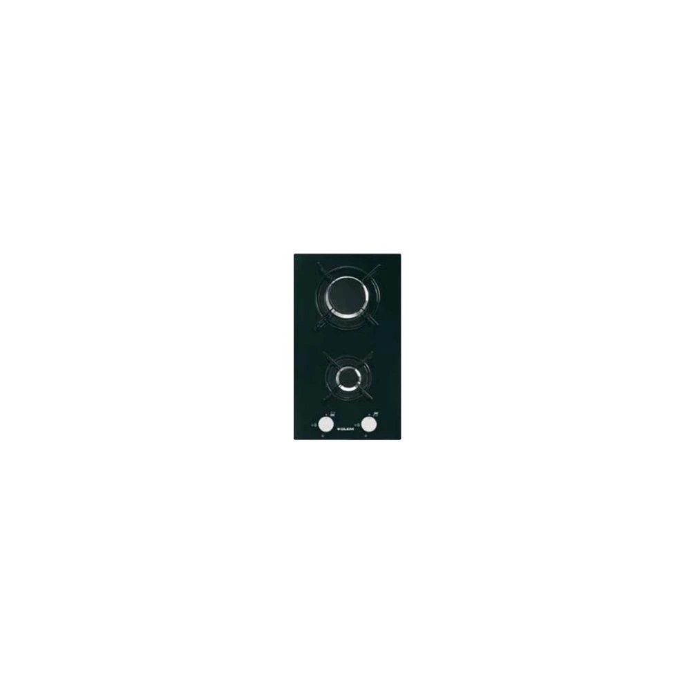 Table Gaz Domino verre gaz 2 foyers gaz Allumage une main Securite gaz par thermocouples Grilles emaillees monofoyer Commandes frontales par manettes