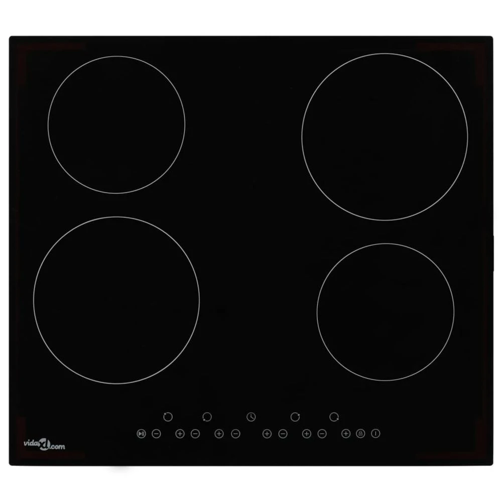 ICAVERNE Chic Électroménager de cuisine ensemble Koweït Plaque de cuisson Céramique 4 brûleurs Contrôle tactile 6000 W Avec des symboles propres et un fonctionnement sans effort, notre plaque de cuisson intégrée est extrêmement facile à utiliser. La plaque de cuisson électrique comprend une commande tactile avec capteur et 4 plaques chauffantes automatiques à 9 niveaux de cuisson. Le dessus de la plaque de cuisson est en verre résistant à la chaleur, qui allie durabilité et sécurité. Elle contient 4 brûleurs pouvant être utilisés individuellement ou simultanément. La température est contrôlée par le capteur intégré, ainsi la plaque de cuisson sera automatiquement éteinte si elle devient trop chaude ou si vous avez oublié de l’éteindre. Grâce à son indicateur de chaleur résiduelle, l’écran vous avertit lorsque la plaque reste chaude pendant un certain temps et libère de la chaleur résiduelle. Elle émettra un signal sonore après l’heure sélectionnée ou s’éteindra après une heure définie avec la minuterie individuelle (jusqu’à 99 minutes). De plus, le verrou de sécurité pour enfants empêche les petites mains de régler les commandes et les verrouille pour le nettoyage. Cette plaque à induction sûre et élégante vous assurera une vie heureuse en cuisine ! Couleur : noir Matériau : céramique et verre résistant à la chaleur Dimensions : 590 x 520 x 52 mm (l x P x H) Dimensions intégrées : 560 x 500 mm (l x P) Puissance totale : 6 000 W Alimentation : 220 – 240 V~, 50 / 60 Hz Niveau de puissance : 9 Commande tactile à capteur Avec une minuterie individuelle (99 min) Avec fonction de pause Avec avertisseurs de chaleur résiduelle Avec un verrou de sécurité pour enfants Avec protection contre la surchauffe Avec protection anti-débordement Avec fonction d’arrêt automatique