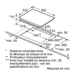 Hauteur maximum de la niche d’encastrement (mm) : 500.