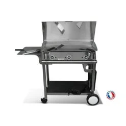 Notre plus grande plancha de notre gamme ! enrichissez-vous de cet appareil qui pourra convenir à 15 personnes au maximum. Entièrement en inox. Dimension : L83 X P45 X H20 cm. 3 zones de cuisson indépendantes. 3 thermostats indépendants de 50° à 300°. Les 3 bords de la plancha ont une hauteur de 7 cm chacun. 2 bols de récupération des graisses amovibles Surface de cuisson : 75 X 40 cm. Plaque de cuisson en inox alimentaire épaisseur 4 mm. Puissance 3600 W. Poids : 27 Kg. Plancha muni de 4 pieds. Cordon d’alimentation de 2 mètres Ce package comporte un chariot en inox muni d’une barre à torchon, 4 roulettes dont 2 pivotantes et freinées. Les tablettes latérales sont rabattables pour un rangement plus facile. Vous y trouverez 1 étagère basse. L’étagère et les tablettes sont en HPL (Compact hausse densité) couleur : Marron. Moderne et fonctionnel il sera vous émerveiller. Le Chariot est livré en pièce détachées. La Notice de montage est fournie. Les dimensions du chariot sont les suivants : H 87cm – 77cm (replié) x P48cm x L149cm – 90cm (replié) -Dimensions tablettes 34.5 x 44.5cm – Largeur entre tablettes (830). Pour finir, vous aurez 4 ustensiles : une pince de service, une spatule courte et une spatule longue pour retourner les aliments, une spatule grattoir, un couvercle et une housse. Elle permet de protéger au mieux votre nouvelle acquisition. Matériel conçu et fabriqué en France.