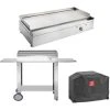 Profitez de cette offre exceptionnelle. Appareil conçu pour 10 personnes maximum. Matériel tout inox. Dimension : L65 X P43 X H18 cm. 2 zones de chauffe indépendantes. 2 Thermostats indépendants de 50° à 300° . Bol de récupération des jus amovible. Les 3 bords de la plancha ont une hauteur de 5 cm chacun. Surface de cuisson 64 x 40 cm. Plaque de cuisson en inox alimentaire épaisseur 3mm. Puissance : 2400 W. Poids : 17 kg. Plancha avec 4 pieds. Le cordon d’alimentation mesure 2 mètres. Norme IPX4. Branchement sur simple prise électrique 230V/16A. Avec cette plancha vous aurez un couvercle en inox et nous vous offrons une spatule grattoir pour le nettoyage et une pince de service bien pratique pour retourner les aliments sur la plancha. Matériel conçu et fabriqué en FRANCE. Plancha à usage domestique uniquement