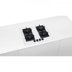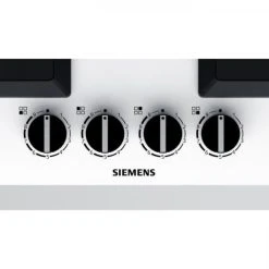 SIEMENS – Table gaz verre blanc 60 cm – Semi-fleur de plan – 4 brûleurs – Technologie stepFlame – Allumage électrique une main – Sécurité thermocouple – Supports individuels en fonte – Puissance de raccordement 7.5 kW