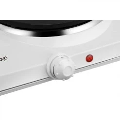 Avec ses deux plaques de cuisson d’une puissance pouvant aller jusqu’à 2300 watts, ce réchaud électrique Ø 15,5 cm et 18,5 cm sera particulièrement utile dans une cuisine d’appoint ou un studio d’étudiant. Vous pourrez y faire chauffer le contenu de deux casseroles en même temps. Ce réchaud électrique AYA est livré déjà prêt à l’emploi, vous n’avez qu’à le brancher pour pouvoir vous en servir. Facile à régler avec ses deux boutons et ses voyants rouges signalant si les plaques sont allumées, ce réchaud électrique est un appareil aussi fonctionnel qu’efficace.