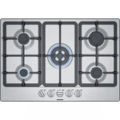 table de cuisson gaz 75cm 5 feux inox – eg7b5qb90 – Table gaz iQ300 Siemens EG7B5QB90 avec bandeau de contrĂ´le de face.Wok jusqu’Ă 3.5 kW de puissance, idĂ©al pour cuisiner une grande variĂ©tĂ© de produit mĂŞme en grande quantitĂ©.Haute qualitĂ© de farbication et des matĂ©riaux (supports en fonte).Table Siemens avec un design unique en acier inoxydable.Usage confortable grâce Ă la qualitĂ© des boutons en Ă©pĂ©es. – 5 brĂ»leurs.