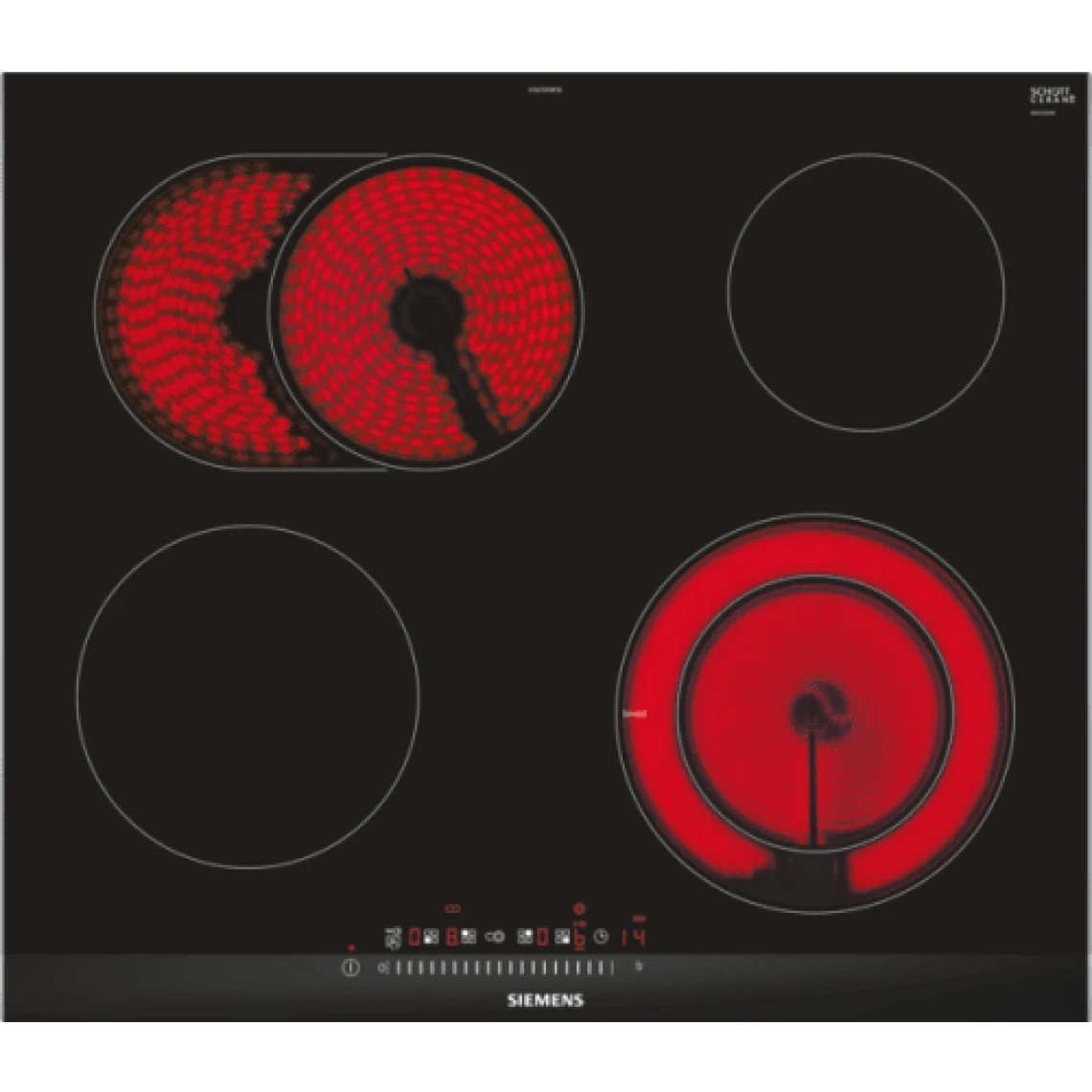 Points forts Siemens ET675FNP1E Table de Cuisson 8300W 4 Foyers Câble Électrique Acier Inoxydable Noir