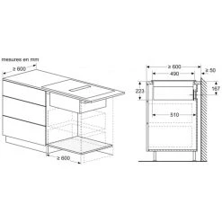 Niche d’encastrement : 223 x 750-750 x 490-490 mm
