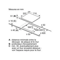 Dimensions Encastrement (LxHxP) : 56 x 5,1 x 49 cm.