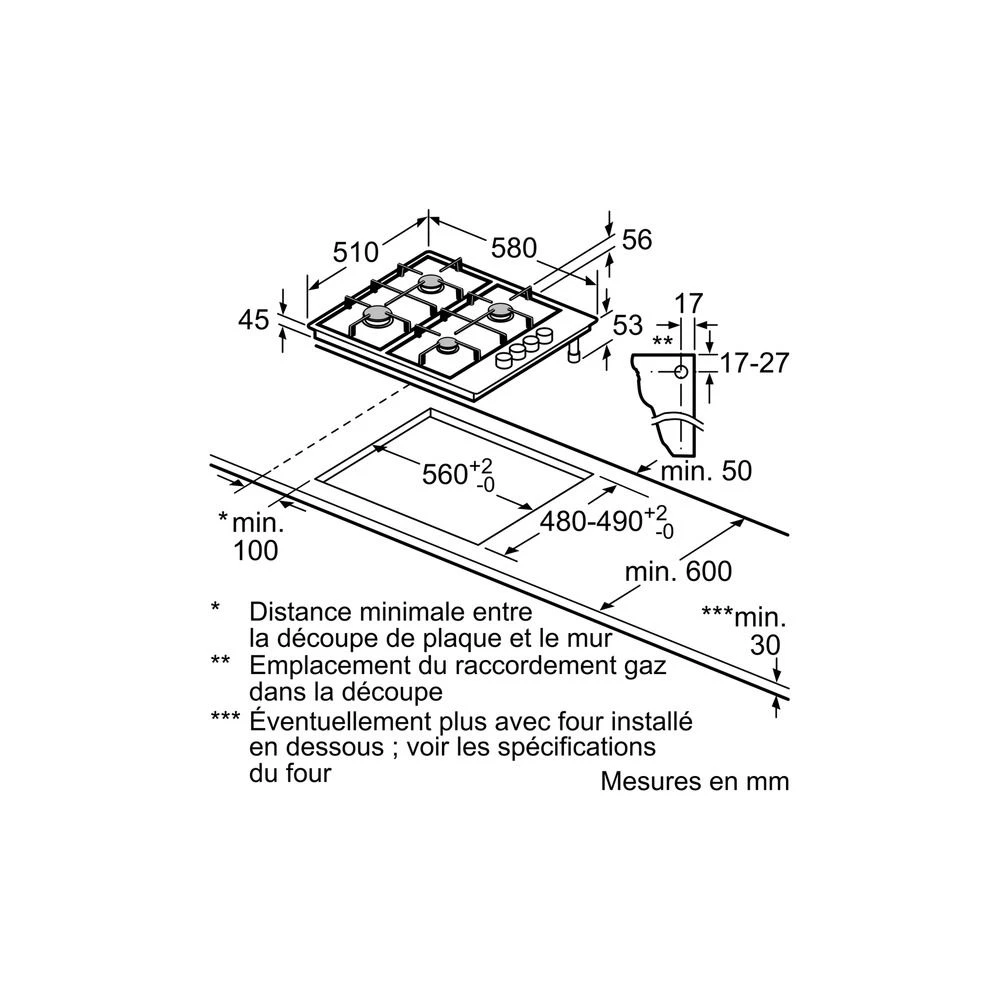 Niche d’encastrement : 43 x 560 x 480-490 mm