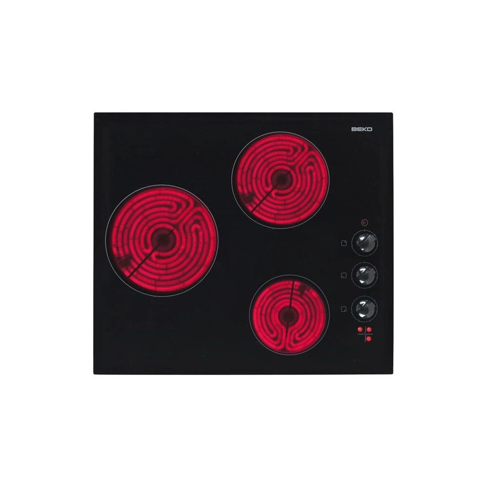 Points forts Beko Table de cuisson vitrocĂ©ramique 3 feux 5000w noir – hic63100 – BEKO