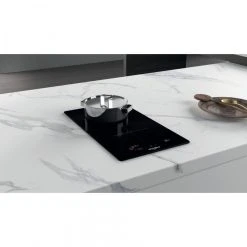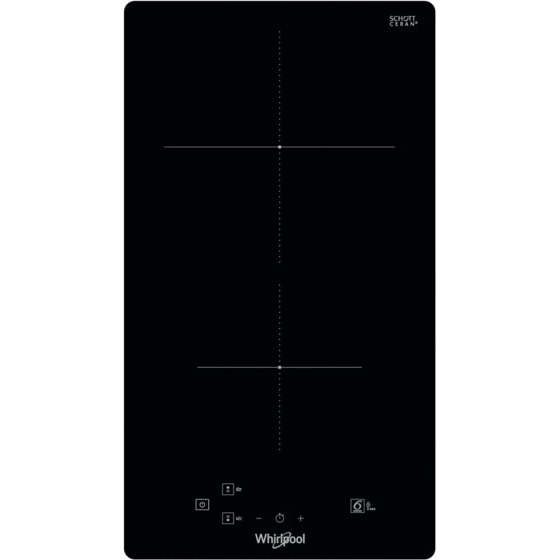 table domino induction 30cm 3600w noir – wsq0530ne – Table domino induction Whirlpool WSQ0530NE avec possibilité d’installation à fleur de plan. Fonctions automatiques 6ème Sens : Faire bouillir sur le foyer arrière et Faire fondre sur le foyer avant. 8 niveaux de sécurité : Anti-surchauffe, Anti-débordement, Temps Maxi (en cas d’oubli d’un plat sur le feux, tout s’éteint), Témoins de chaleur résiduelle, Détection de récipients, Petits objets (la plaque ne s’allume pas si elle détecte un petit objet qui n’est pas une casserole), Faible Intensité (un détecteur signale et conseille de contacter un technicien) et Enfants (verrouillage des commandes). – Type de produit : Table domino induction.